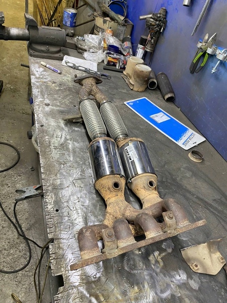 Вырезали катализаторы и почистили выхлопной коллектор