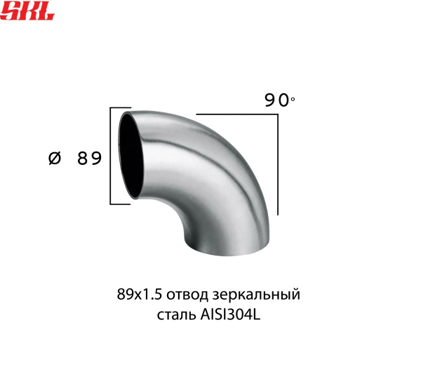 Отвод 90 градусов Ø 89 мм, толщина стенки 1.5 мм